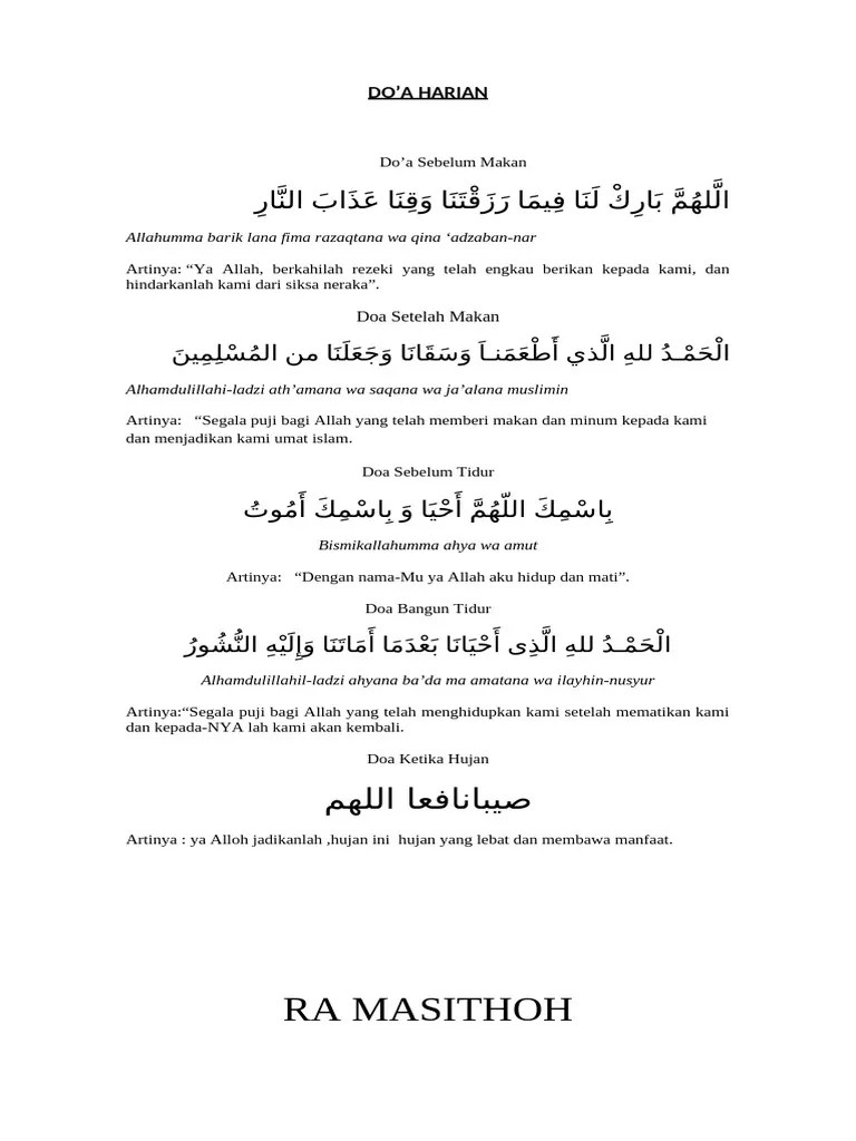 Teaching the kids about halal and haram foods. Allahumma baarik lanaa fiimaa rozaqtanaa wa qinaa 'adzaa bannaar. artinya bahasa indonesia : Doa sebelum makan in arabic and english. Panjatkanlah doa sebelum makan untuk berterima kasih kepada . Maksud doa sebelum makan dalam bahasa inggeris. Doa sebelum makan in arabic and english. Kalimat ini berasal dari sumber eksternal dan mungkin tidak akurat. Here are many translated example sentences containing doa sebelum dan selepas . Ketika sebelum makan misalnya saja. · god is great, god is good.